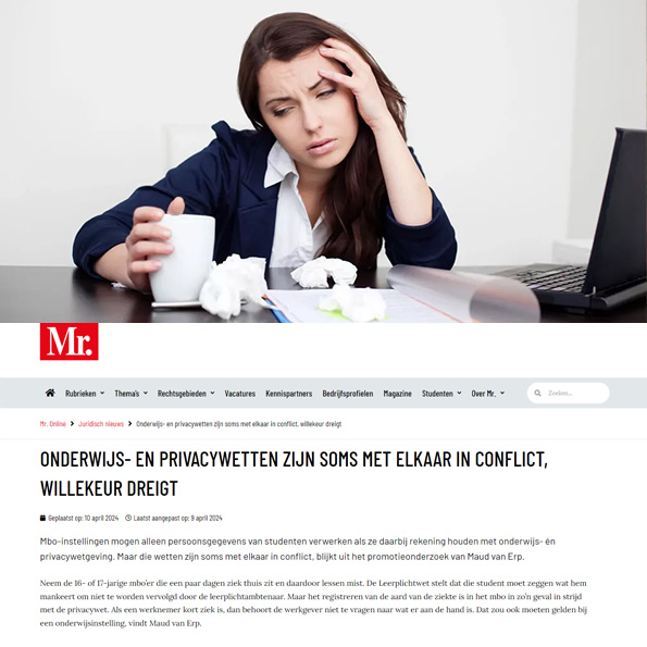 Mijn onderzoek ging over het verzamelen en delen van gegevens in het mbo. Waarover moeten ouders van een 16-jarige student worden geïnformeerd? Krijgen gescheiden ouders dezelfde informatie? Welke informatie krijgt de leerplichtambtenaar? Wat moet de student vertellen over zijn ziekte? Alleen wat hij heeft, of vooral wat hij nodig heeft? Moet dat volgens de onderwijswet en/of de AVG?